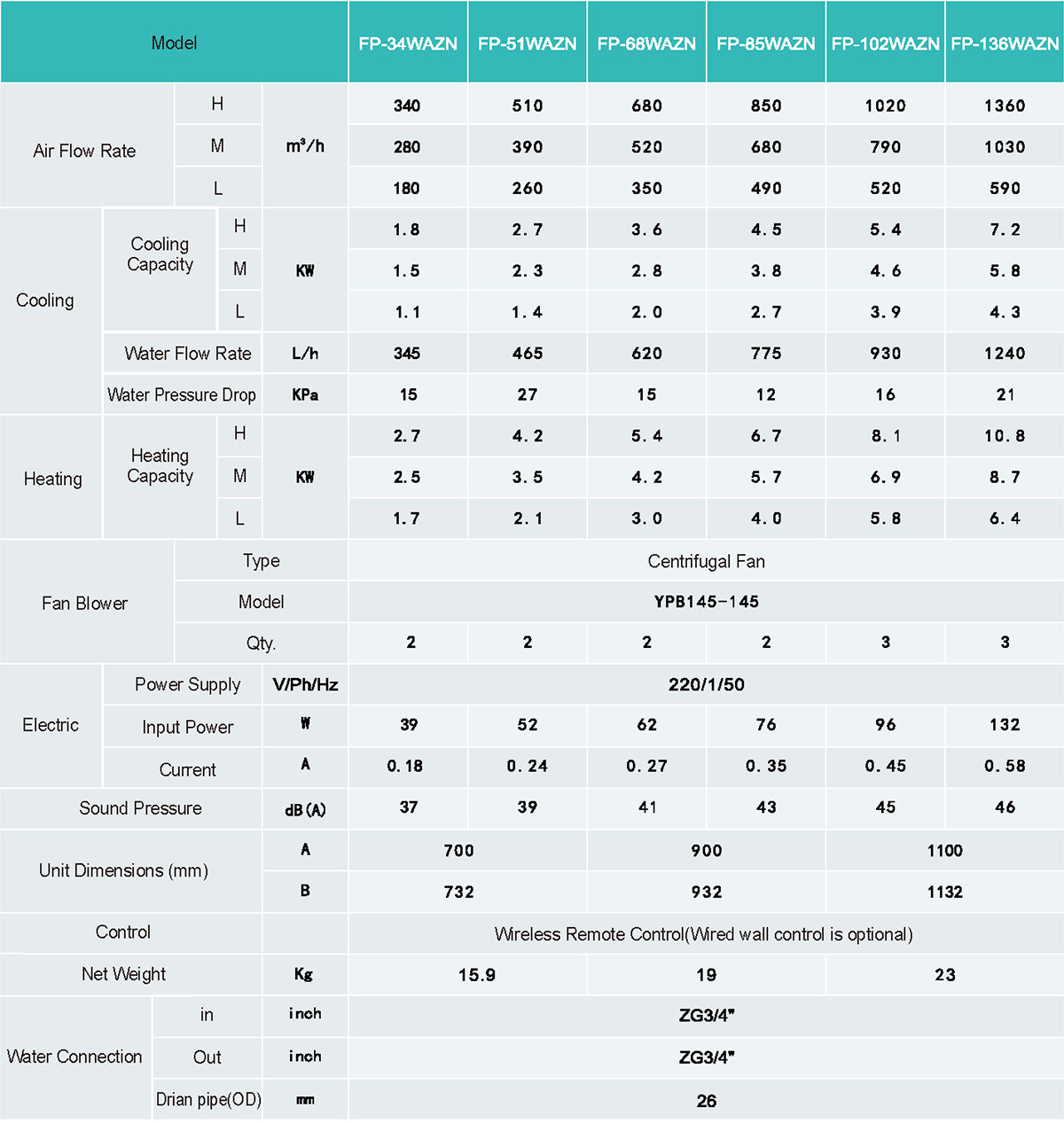 Ultra-thin, ceiling concealed type FCUs, suitable for hot/chilled water system